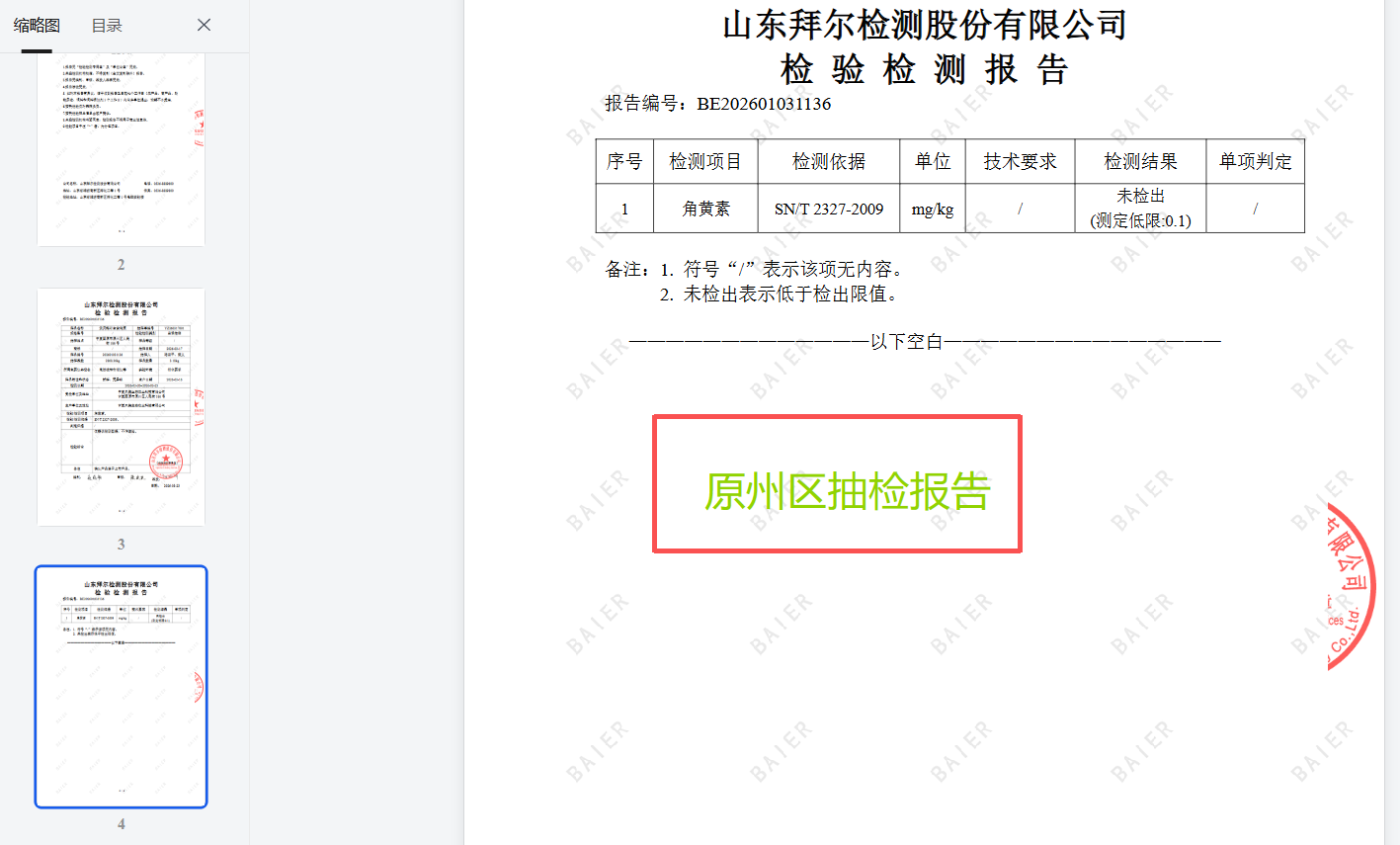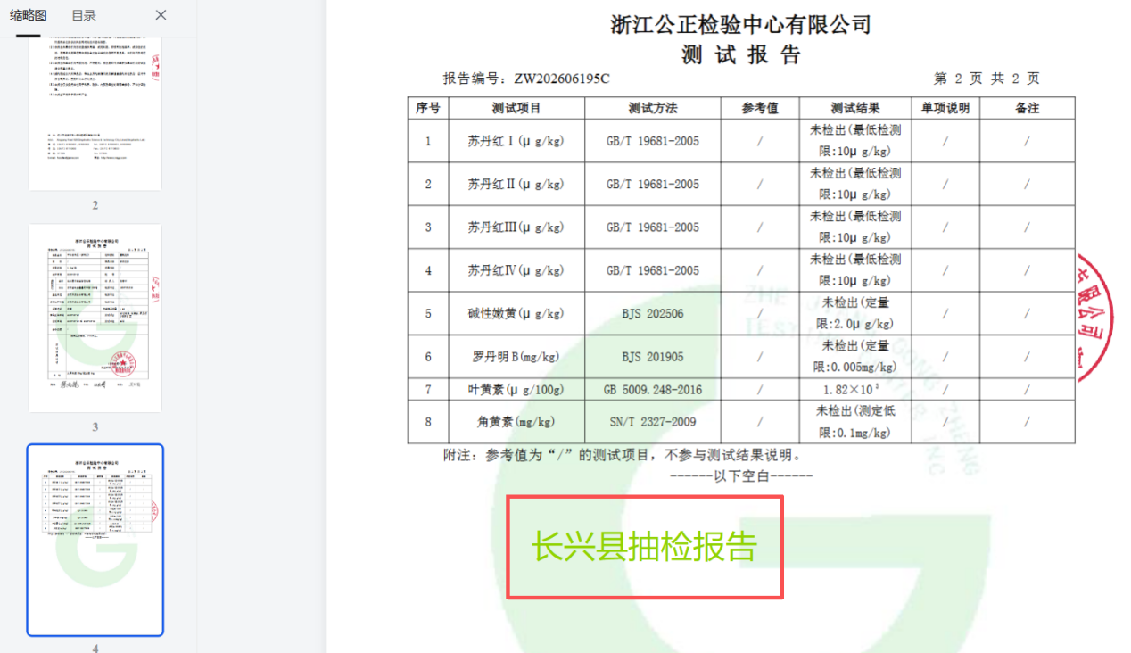 3月17日,黄天鹅公告称属地市场监管部门已完成现场抽检,样品送权威机构检测,等待官方结果。直至3月25日,黄天鹅公布自检与三地监管抽检报告,除自检外,三份官方抽检角黄素均显示“未检出”。