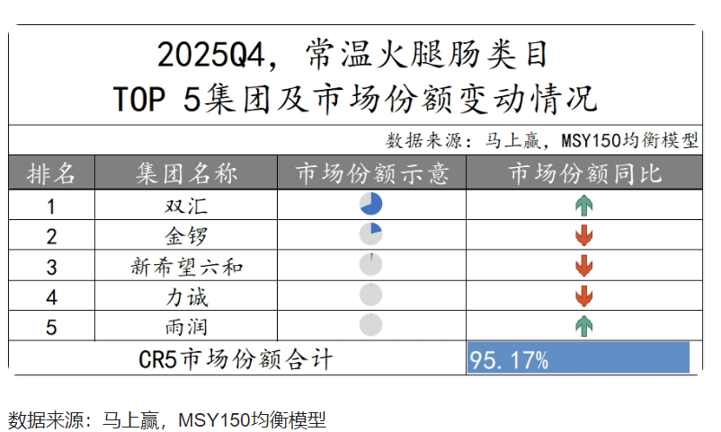 从市场份额来看,2025年上半年,今麦郎方便面市场份额仅7.84%,远低于康师傅超40%、白象超15%的占比,与头部企业差距持续拉大。另据马上赢发布的《2025Q4方便速食市场回顾》,2025年第四季度方便面市场中CR5市场份额达到84.18%,头部五强依次为康师傅、统一、白象、今麦郎、三养,其中位列第四的今麦郎,当季市场份额呈现同比下滑态势。可以说,曾经与康师傅、统一并肩的行业地位不复存在,逐渐沦为市场边缘参与者。