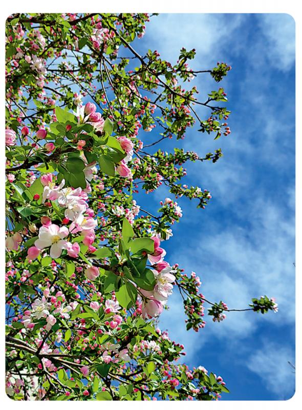 走在路上,蓦然发现,街边桃红紫兰,护城河边绿柳垂丝,飘逸如线。窗外的白玉兰谢了,正在长绿叶。隔壁海棠花又开了,粉红色的小花,淡淡的香气。医院附近明城墙遗址公园也是古墙繁花,又大气又明亮。我拍了几张给妈妈看,说妈妈等您出院,花开得正好,咱们去看花。妈妈说,好!
