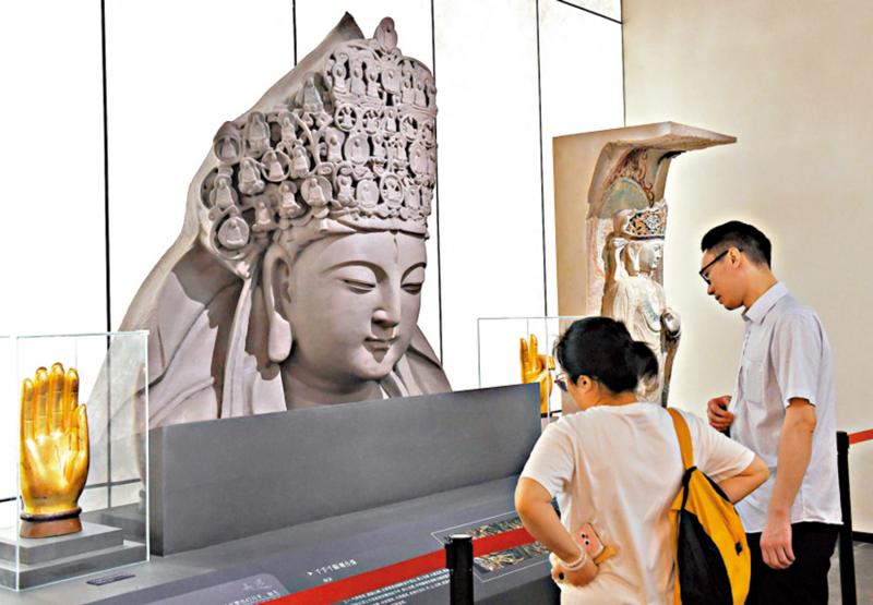 图:“从敦煌到大足:石窟艺术中国化流变”展览正在重庆中国三峡博物馆举行,二百馀件展品吸引民众参观。