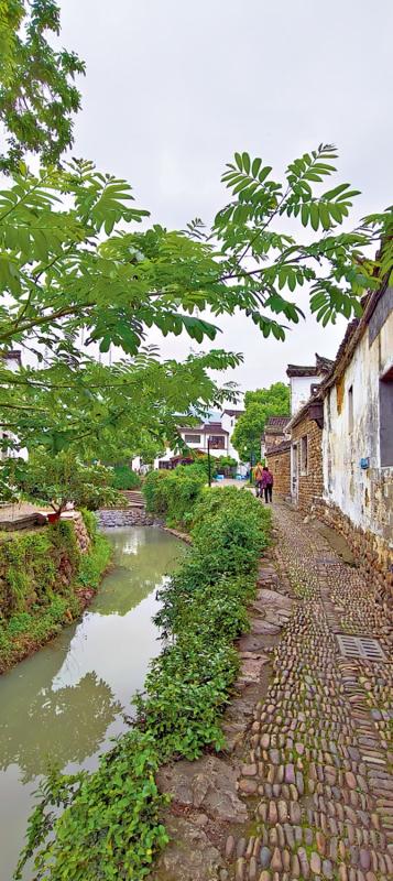 古镇街巷由鹅卵石铺筑,历经千年踩踏,石子光滑温润。墙面也是石子,斑驳古朴,很有画面感。溪流穿镇而过,河边大树横斜,人们在河边洗衣,古巷多了几分灵动。