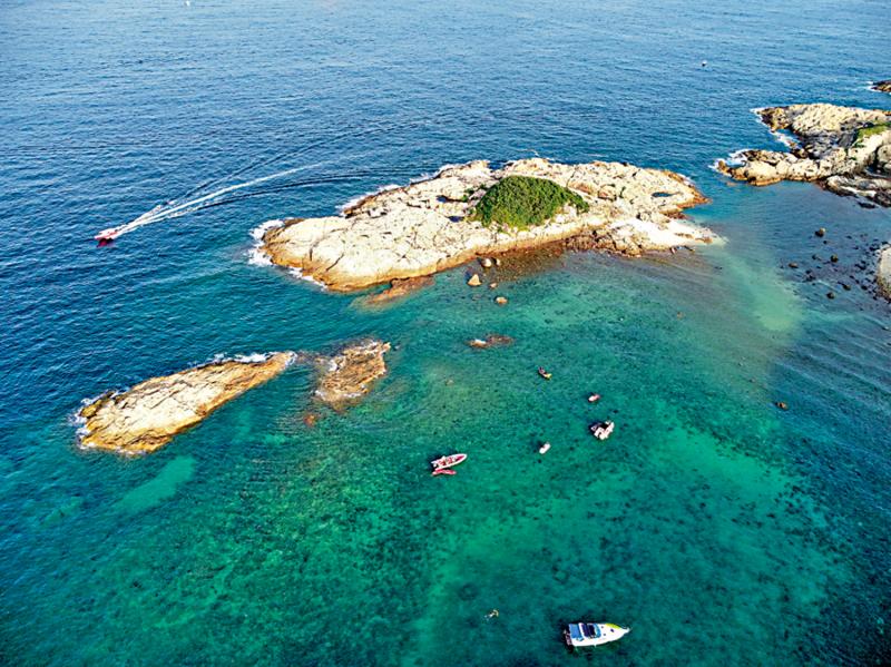 我向来觉得,香港的山水是不肯轻易示人的。你要见它,须得自己走过去;坐车不行,坐船也不行,非得用些力气,出些汗,它才肯把真面目露给你。划独木舟便是这样。四十分钟的光景,说长不长,说短不短,够你把心思都沉静下来,也够你把一身的尘嚣都洗去。桨在水里一起一落,像在翻阅一本无字的书。翻到一半的时候,相思湾的小楼已经消失在身后,而前方那只“荷包蛋”却渐渐地大了、圆了、绿了。此岛中央是一团浓得化不开的青翠,四周镶着一圈乳白的岩石,硬生生从大蓝海里隔出来一汪小碧湾。岛屿的内湾是碧汪汪的海水─一层一层地铺开去,淡青、浅蓝、蔚蓝、深蓝,直铺到天尽头;而另一边则是湛蓝湛蓝,一望不见底的深蓝。站在岛屿上往两侧看,往左是碧绿,往右是深蓝,美不胜收!我停下桨,任船在海面上悠悠地蕩着。四下里没有声音,只有远处偶尔传来一两声鸟鸣。这时候,你才觉得人是渺小的,而天地是大的。