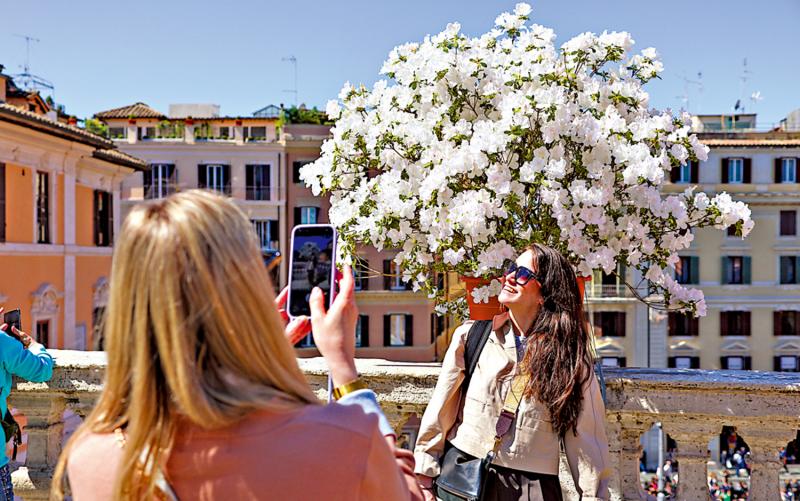 近日,意大利首都罗马气温上升,城市各处繁花盛开,吸引世界各地游客前来观赏,为千年古城增添浪漫色彩。\新华社
