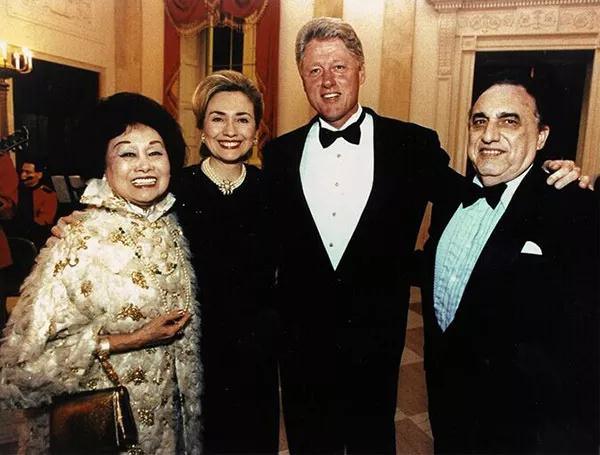图:陈香梅(左)与克林顿及其夫人希拉里合影