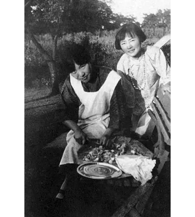 图:林徽因与冰心在美国留学时一起野炊的合影,当时两人相处仍很融洽。