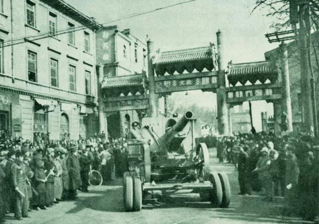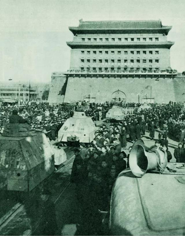 图:1949年1月31日,北平宣告和平解放,人民解放军举行入城式,图为通过正阳门的情况