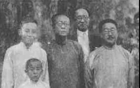 新记《大公报》创始人张季鸾(左一)、吴鼎昌(左二)、胡政之(左四)合影