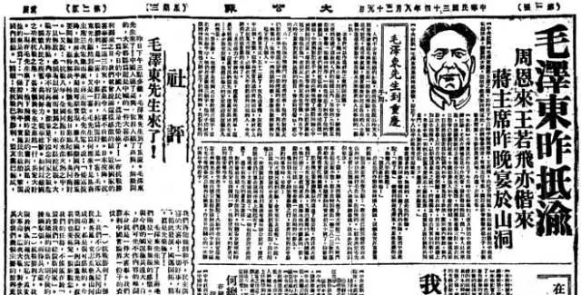 鲜为人知的是,《大公报》还是国共谈判的最早倡导者之一,早在1941年5月,张季鸾就在一篇社评中说到:“最好毛泽东先生能来重庆与蒋委员长彻底讨论几天,只要中共对于国家前途的基本认识能真实成立、一致谅解,则其他小问题皆不足障碍合作,而这种团结抗战的新示威,其打击敌人的力量比什么都伟大。”这个建议是在重庆谈判四年前首次提出来的。