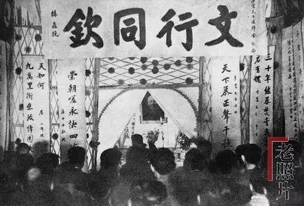 张季鸾公祭大会,灵堂中央为蒋介石题写挽联