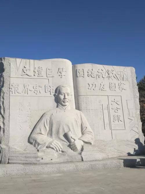 张季鸾墓园前的张季鸾像与大公报浮雕
