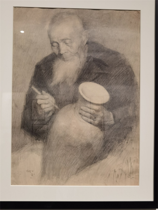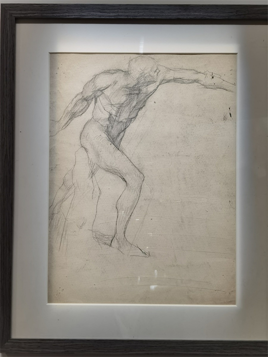 素描草图《掷标枪的人》,“掷标枪”也是美术界绕不开的母题(张帆摄)