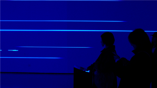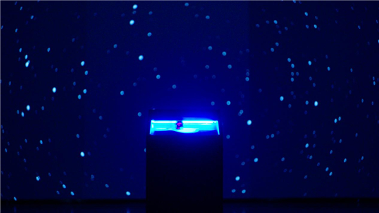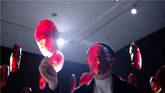 展览的一大亮点是通过作品的互动性与沉浸感,拉近观众与当代艺术之间的距离,从视觉、触觉、听觉多个方面调动观众的感知,为人们带来奇特的观展体验。比如,观众在展览现场的呐喊会触发《眼里尽是光》的声控装置,让高耸的黑色毛毡内部爆发出强烈的光。他们还可以用双手遮盖《我们的岛屿》的雕塑表面,感光涂层的颜色将受到光线的影响发生改变。另一件新媒体影像装置《心跳的瞬间证明你活着》甚至能够捕捉观众内心世界,在他们用手触摸感应器的时候,周围的墙壁上就会实时生成代表情绪起伏的红色和蓝色影像。