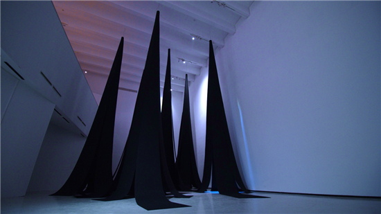 《眼里尽是光》尺寸可变,软质纤维、钢、灯光、声控装置,2021-2022