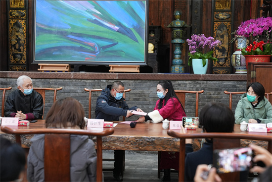 1月27日下午,在位于北京大兴的坦博艺苑举行了“坦博艺苑携手中外艺术名家向延庆冬奥村捐赠书画作品仪式”。坦博艺苑创始人、中国社会艺术协会副主席、收藏家白十源先生向延庆冬奥村无偿捐赠了20幅当代名家书画作品并指出:这是我们会同中外艺术家共同贯彻习主席关于“向世界呈现一届简约、安全、精彩的奥运盛会”的重要指示,传承奥林匹克精神,聚力为北京冬奥会作贡献的实际举措。