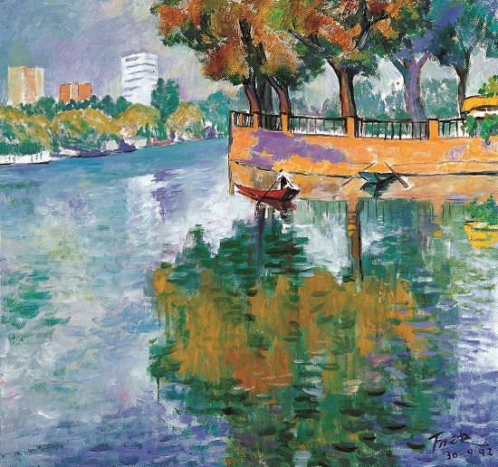 当我们谈及中国画,总会有“书画同源,诗画一体”的说法,即将诗、书、画三者合而为一,成就了中国传统绘画别具一格的表现形式,笔行纸上却足以营造出立体的感知维度和丰厚的内涵层次。这种文人气的传承同样体现在丁天缺的创作生活中——即使选择了油画的表达方式,他对生活的敏感和深厚的文学素养仍旧通过诗歌的方式迸发出来——无论落难时屈居囹圄还是后来的置身画室,丁老都牢牢握紧手中的这两支笔:一支,用热烈的色彩去拥抱生活;一支,用文人的诗词去直抒心臆。
