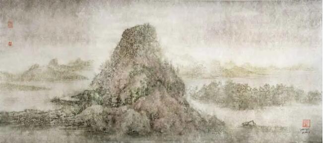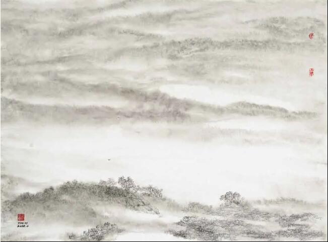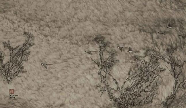 上世纪90年代,尹毅的“水墨+质感空间感”系列可以看作他探索的重要一站。一如著名画家于希宁先生所评论的,尹毅的水墨画技法是崭新的、多变的,表现出的艺术效果是丰富多彩的。他的这些作品构图严谨、章法别致、清新淡雅、空寂超尘、朦胧含蓄、如梦如诗,具有很高的品位和意境。