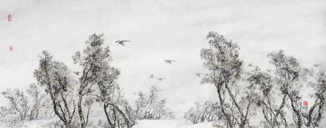 尹毅于上世纪80年代中期开始聚焦水墨画的画种优化问题,数十年如一日坚持绘画方式、技法、材料与工具的研究,在水墨艺术当代性与多元化的探索实践中,逐步使其作品拥有了多种个性化艺术语言和独特艺术风格。