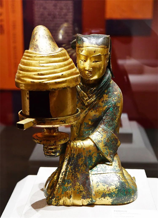 (图为在“大美亚细亚——亚洲文明展”展出的元青花四爱图梅瓶和长信宫灯,金瑞国供图)