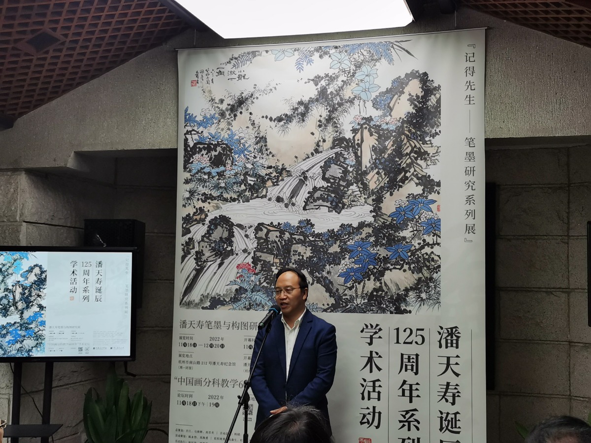 中国美术学院副院长沈浩说,潘天寿先生是20世纪中国艺术史上的一座高峰。潘老的艺术,在传统中定立精神,在危机中开拓新局。在教学上,潘老提出中国画分科教学方案,人、山、花人才专精培养,以中国书画笔墨为核心,坚持诗书画印与人格修养的全面锻造,奠定了现代中国画教学体系的重要基础。今天的中国画教学和莘莘学子仍然受惠于潘老所建立的教学体系,这充分证明了潘老教学思想和教学体系的重要价值和深远影响。这次潘老125周年纪念,专门围绕中国画分科教学展开研讨,具有很强的现实意义。