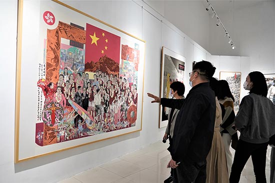 参展作品《建党百年 庆香港回归》/记者 郭若溪摄