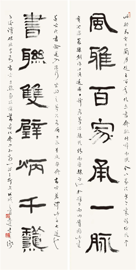 言恭达 隶书自撰联 风雅百家承一脉 书联双璧炳千秋