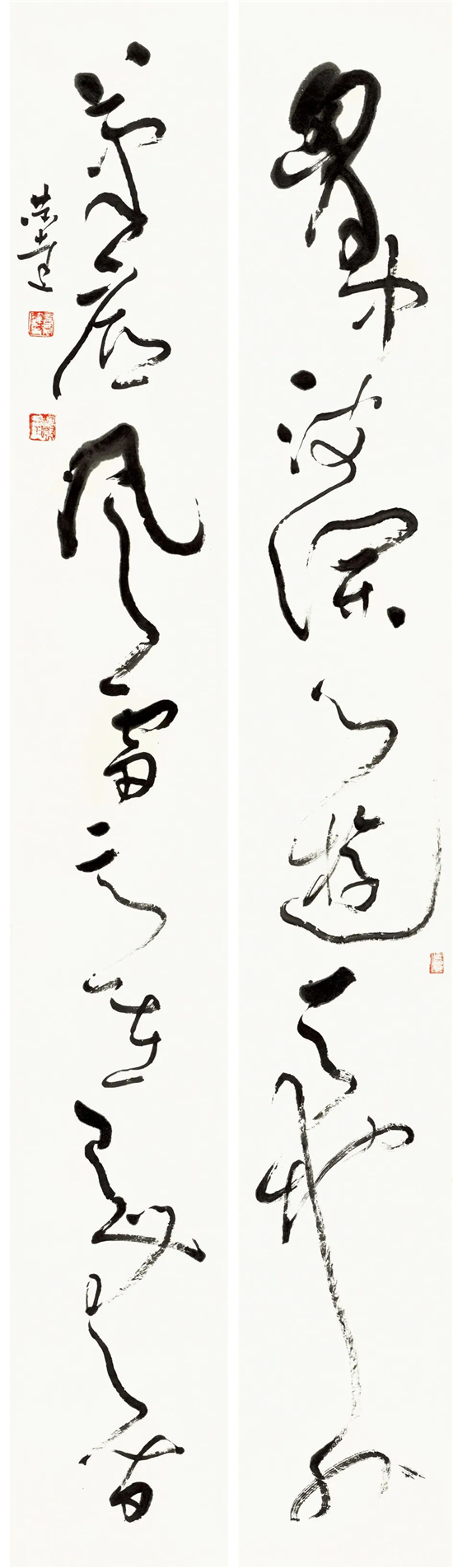 言恭达 草书自撰联 胸中波澜心游天地外 笔底风雷意在有无间