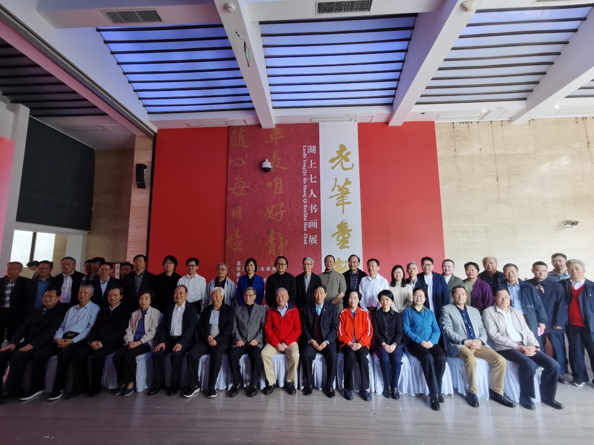 开幕式现场,7位作者悉数到齐,此外,浙江省老领导柴松岳、刘枫、王贺文、王新海、叶荣宝、王玉娣、陈艳华、汤黎路、裘东耀、陈云龙,浙江省老干部局局长龚和艳、浙江省文旅厅副厅长叶菁,中国美术学院院长高世名,浙江省文联副主席、省书协主席赵雁君,中国美术学院副院长沈浩,中国美术学院中国画与书法艺术学院党总支书记兼副院长韩璐,杭州市书协主席童亚辉等近百人出席此次开幕式。