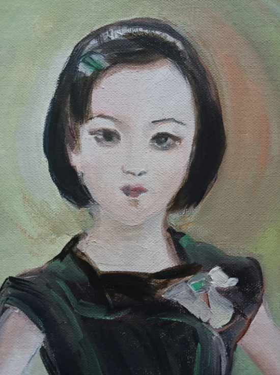 王老师一边在调色盘上用两种不同的浅色调出一种新的浅色,一边说架上我那张画的问题在于,绿与紫两种色彩的饱和度都太高了,如果我没有意见,他将向我展示一种有点像罩染的技艺。画笔“唰唰”来回间,架上原来女子的肖像即隐遁在薄薄浅色的背后,朦朦胧胧的,随后他还加了两个圆圆的光点,让肖像平添了一丝神秘的感觉。此时距离电影《消失的她》下线已经有一段不短的时间,而关于英国威尔士王妃凯特究竟缘何消失在大众视野的各路猜测依然为社交媒体所高度关切。