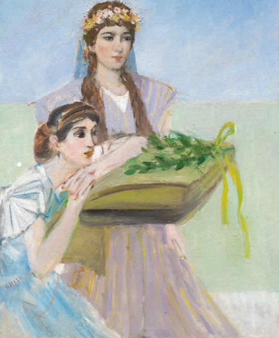 是女儿,从遥远的巴黎向我发问。短暂逼仄的求学时空里,她曾多少次见缝插针,跑遍卢浮宫、蓬皮杜与奥赛等大大小小的博物馆或美术馆,还漂洋过海,给我寄来比水果要贵得多的法文版画册。犹记出门远行前,我们一起画下了双人肖像《去希腊》。分离的两年,我写了两本书,她为我写了两个后记,还做了必要的国际通用语言审校。而那件作品,也经由两位青年才俊之手的润色,永久定格于我们的书页。作为感谢,女儿把对人类艺术源头的回溯与艺术发展脉络的永久追寻,渐次展开成成长路上的行为艺术。