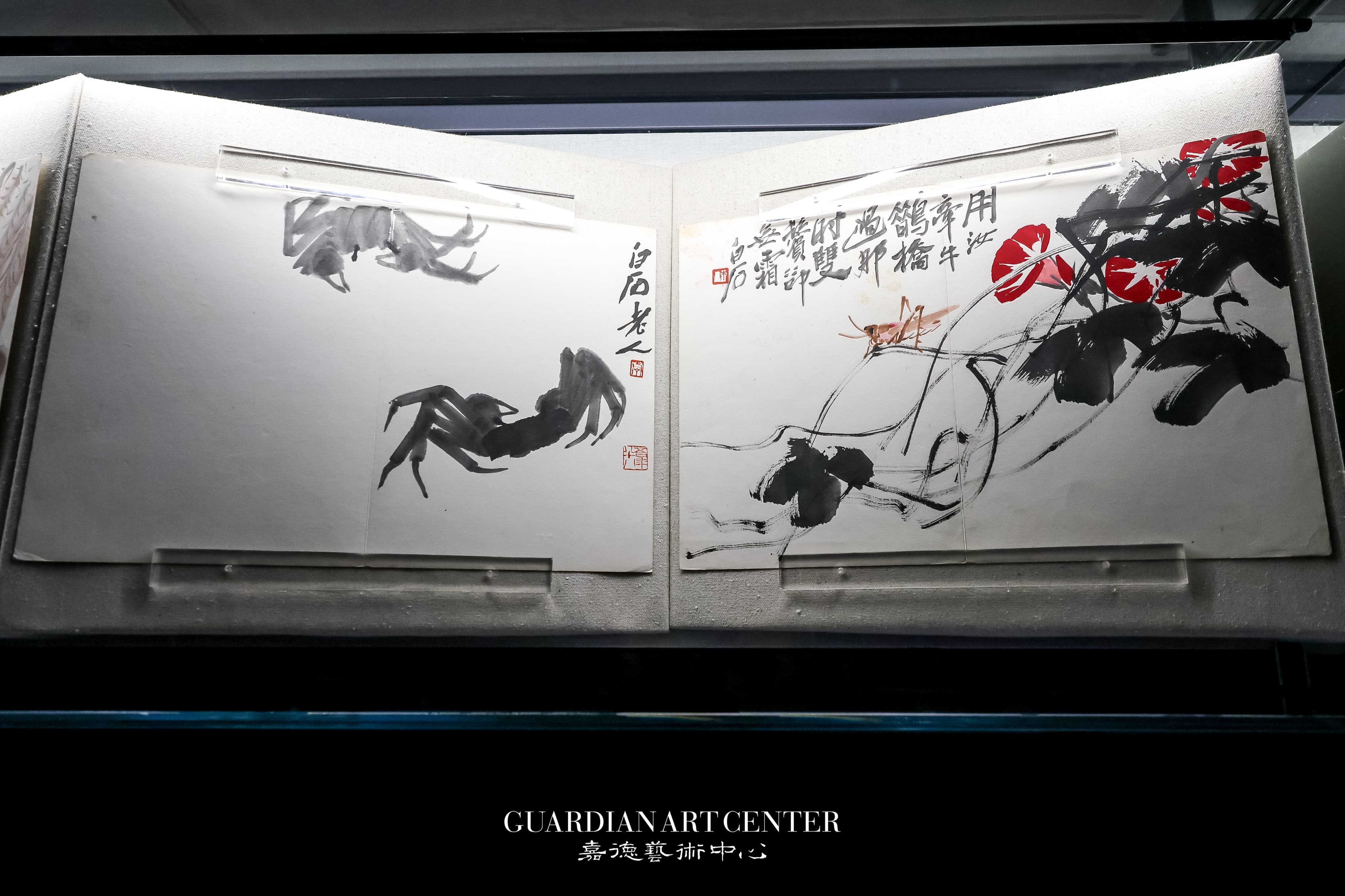 展览特别展示了徐悲鸿对齐白石的推崇与扶持。徐悲鸿曾以远高于市场价的价格,收藏他认为齐白石画得最好的作品,并鼓励齐白石将精品留存。一幅徐悲鸿精心整理、涵盖虾、蟹、花卉等题材的齐白石册页,正是这种知遇之恩的体现。他曾对齐白石说:“你画得好的作品都不要卖,留着,过年时我来都收走。”这份支持给予了齐白石极大的信心。