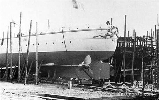 图为清朝新购战舰“致远”号,在德国造船厂下水前的情形。船上悬挂德国旗,船尾镶有清国海军标志的龙形铭牌。动力系统采用双引擎螺旋桨驱动,是同时代最新型战舰。图片来源网络