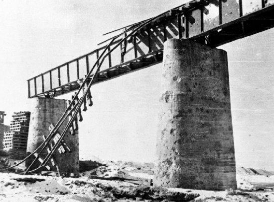 这是抗美援朝时期敌机炸毁的铁路大桥(资料照片)。新华社发