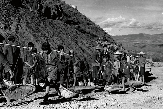 1937年11月2日,国民政府正式下令龙云,由行政院拨款,令云南省一年内修通滇缅公路,龙云不敢怠慢,立即通令沿线各县征集民工大举上山施工,男女老幼在没有任何施工机械的情况下,完全凭人力,胼手抵足,逢山火烧裂石,遇水人工搭桥,路基则依靠人力推动巨碾滚压,云南二十万民工以万众一心的姿态,仅有九个月时间就提前竣工通车。