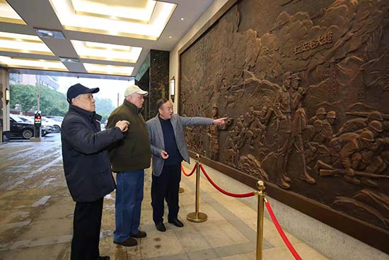 从左至右:作者,谢晋元团长公子谢继民,张自忠上将嫡孙张纪祖,李烈钧将军嫡孙李季平