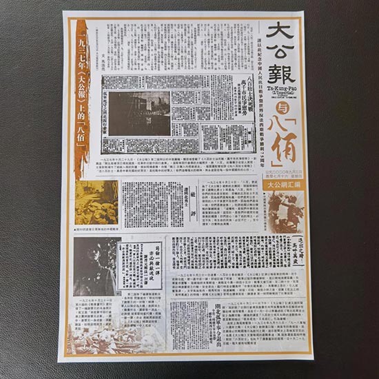 大公报社长助理、大公网执行总裁兼总编辑王文韬先生赠作者当年大公报影印件
