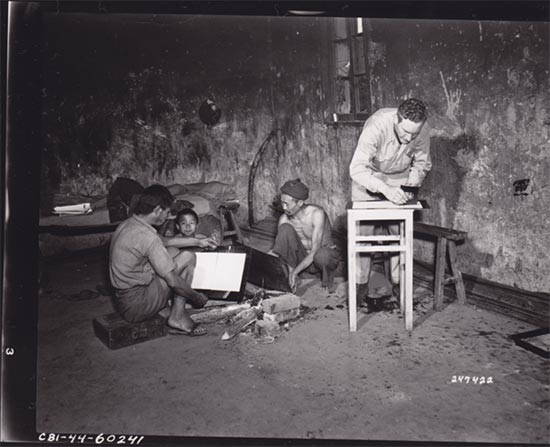 译者配图:1944年9月17日,在中国云南的松山战役前线, 来自加利福尼亚的164照相连摄影师威廉姆·蓝道夫William Randolph在临时工作室里印晒照片,有两名中国人在协助他作业。/ 美国国家档案馆图片
