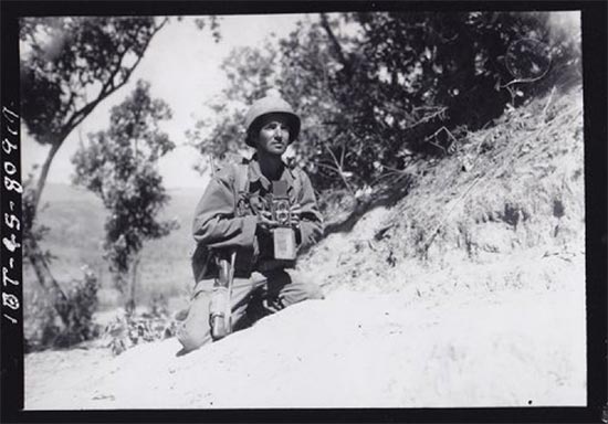 译者配图:来自加州洛杉矶的查尔斯·齐默曼Charles Zimmerman 技术军士,是中缅印战区美军通信兵第164照相连的战地摄影师。1945年2月4日 缅甸· / 美国国家档案馆图片
