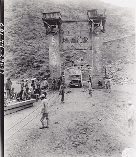 译者配图:164照相连的爱德华.迈克米科EDWARD RMcCORMICK驾驶第一辆吉普车通过惠通桥。 / 美国国家档案馆图片