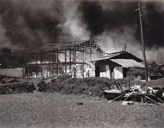 译者配图:隶属驻华空军第十四航空大队的战地摄影师哈罗德.吉尔Harold E. Geer上士和佛兰克.图特威勒Frank W.Tutwiler中士拍摄的桂林机场撤离前的自我摧毁营房设施场景。 / 美国国家档案馆图片