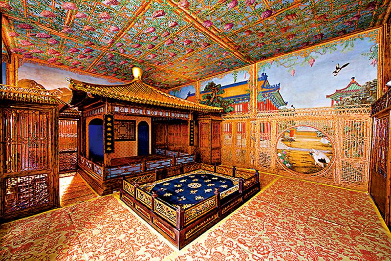 王旭东在讲座上提到了北京故宫博物院一个十分有趣的地方——倦勤斋,这座宫殿原是清代乾隆皇帝为自己颐养天年而建,却没有住过一天,装潢设计既有皇帝对中华文化发自内心之敬仰,其间用到的通景画,初期多用于西方教堂及皇室贵族建筑当中,用于此处,是皇帝接受新鲜事物的表现。