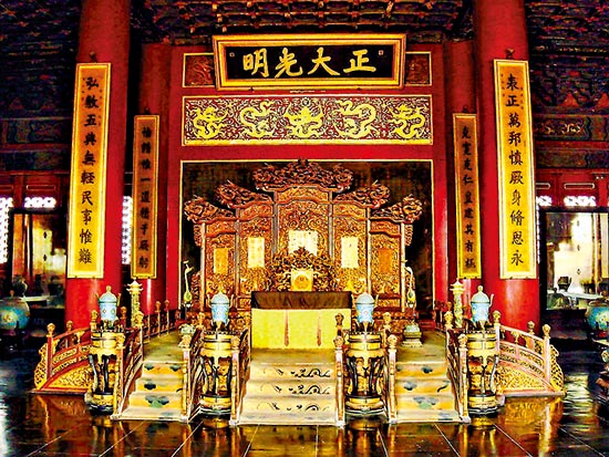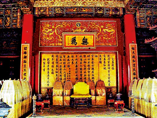 在王旭东看来,六百年历史的北京故宫博物院不仅是明清皇家建筑群的集中彰显,更是中华五千年文明的延续,“宫殿依据中轴线排布,这样一种平衡对称的结构,体现的是中国人的仁义礼智信。”王旭东道。不仅如此,明清皇家理政、生活的场所──太和殿、中和殿、保和殿、交泰殿等,他认为反映的是当时统治者的政治理念以及生活审美。