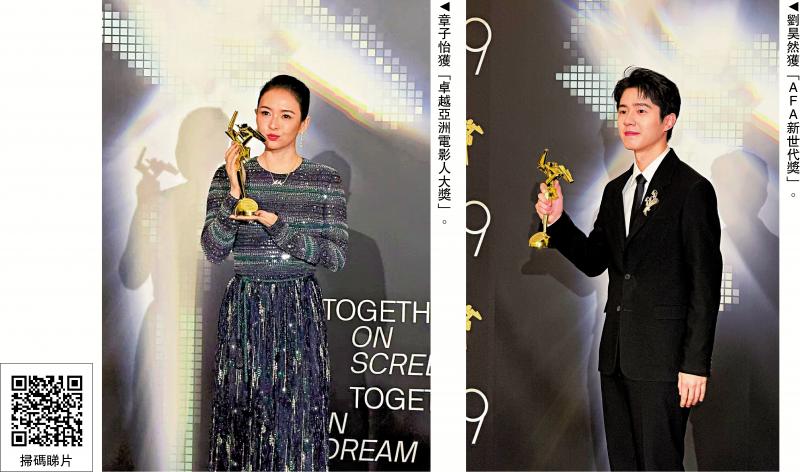 香港年度影坛盛事第19届亚洲电影大奖颁奖典礼昨日于西九戏曲中心举行。大会早前基于大埔宏福苑火灾,决定今届仪式从简举行,只颁发三项大奖,包括:章子怡获得“卓越亚洲电影人大奖”,刘俊谦和刘昊然分别获得“亚洲飞跃演员奖”和“AFA新世代奖”。三人现身领奖现场,章子怡说自己对于现实主义题材、关注当下的人和当下的心情的作品仍感兴趣,并透露马上就要开始新的工作,“让我们拭目以待。”/大公报记者 徐小惠(文、图)