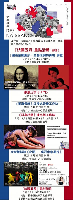 法国五月艺术节(下称“法国五月”)及法国五月美食荟2026,昨日在香港举办新闻发布会公布逾100场精彩节目。今届“法国五月”艺术节以“文艺再兴”为主题,横跨4月至7月,汇聚香港、法国等地的艺术家呈现涵盖现当代艺术、音乐、舞蹈、戏剧、沉浸式体验、马戏、电影、美食、体育等领域,为观众带来多元的法式文化体验。\大公报记者 颜 琨