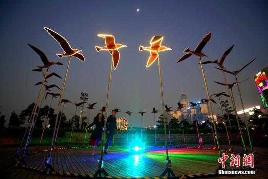 资料图片:以“爱与浪漫”为主题的“国际灯光艺术展”将于1月18日至2月24日在香港中环海滨举行。中新社记者 张炜 摄