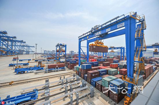 2018年6月8日,山东青岛,青岛港全自动化集装箱码头作业场景。/来源:东方ic