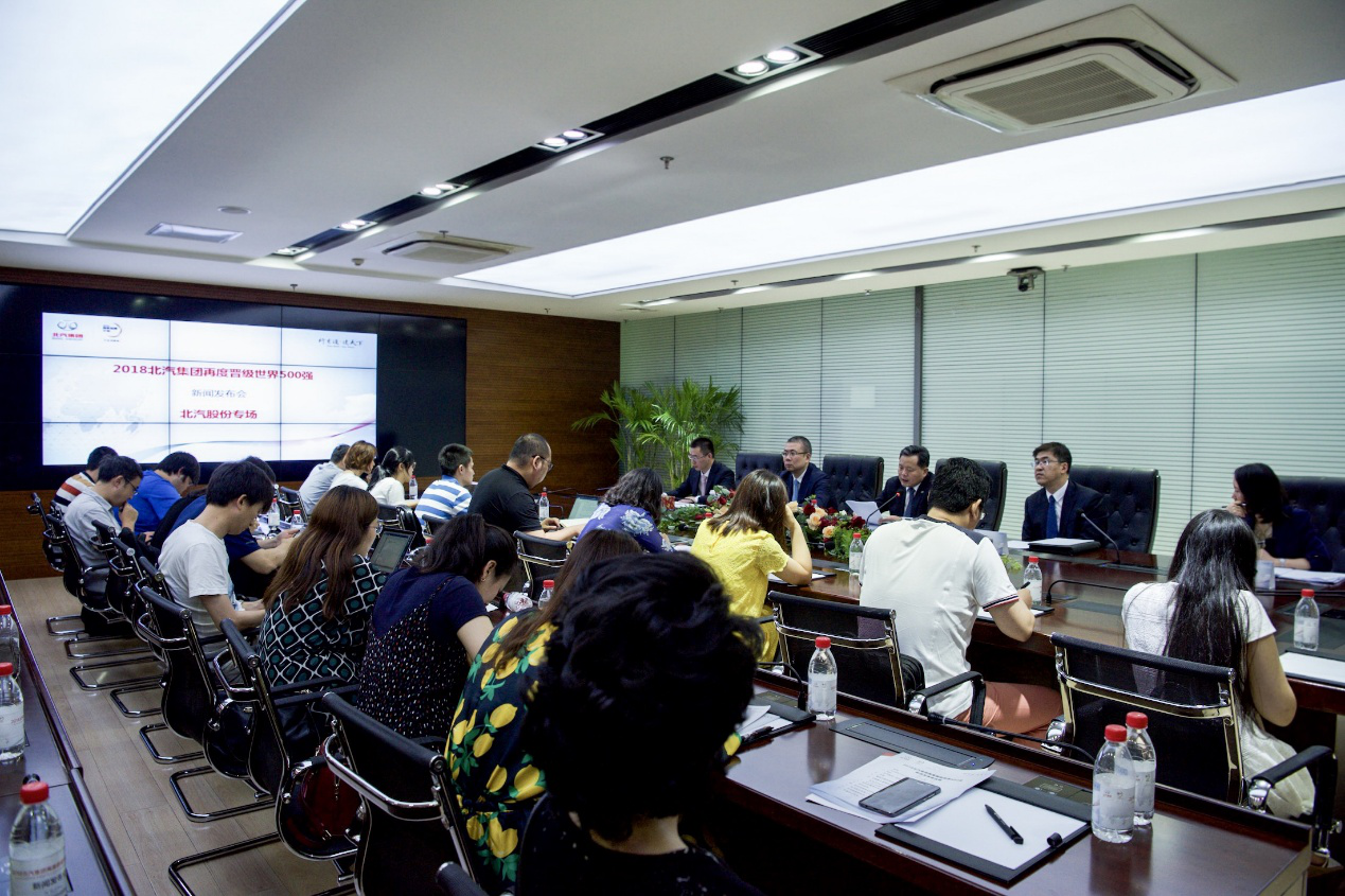 北汽集团党委书记、董事长徐和谊,北汽集团党委副书记、总经理张夕勇,北汽集团党委常委、副总经理蒋自力等集团及各部室领导。北京汽车股份有限公司(以下简称北京汽车)党委副书记、总裁陈宏良,北京汽车副总裁、北京现代党委书记、常务副总经理刘宇,北京汽车副总裁、北京奔驰党委书记、高级执行副总裁陈巍,北京汽车副总裁、北汽销售有限公司党委书记、总经理吴周涛,及北京汽车主要成员单位、相关部室领导,共同出席新闻发布会。《财富》世界500强排行榜中国区代表张丹女士,现场宣布了北汽集团最新排名。与此同时,张夕勇总经理,向现场70余家媒体,介绍了北汽集团的2018年上半年发展情况及未来发展思路。