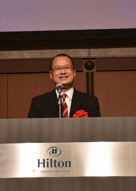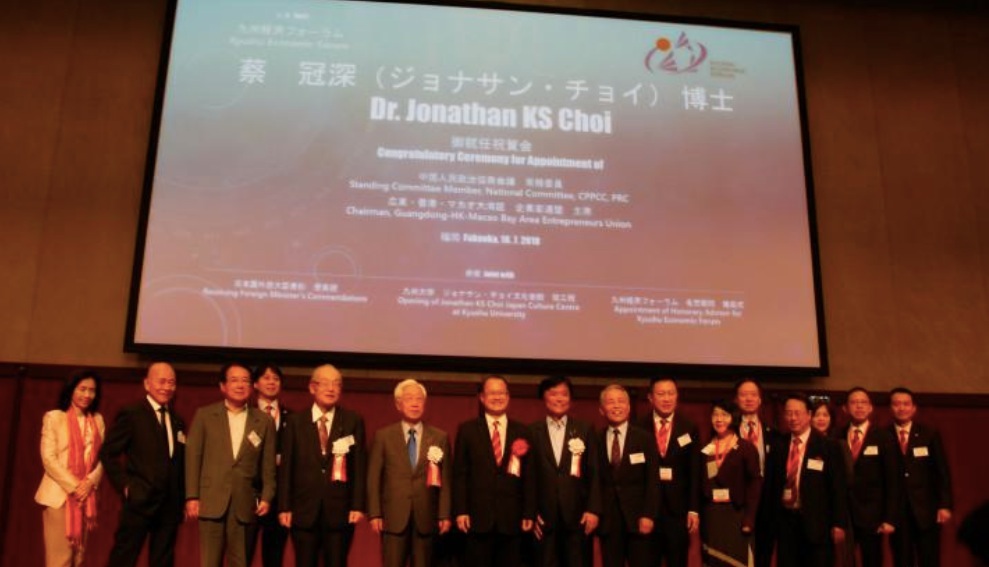 论坛开始之前,日本九州政商界首脑共聚一堂,特为蔡冠深举办了隆重的祝贺会,祝贺蔡博士捐建的位于九州大学内的蔡冠深日本文化中心将启用等多宗喜事。