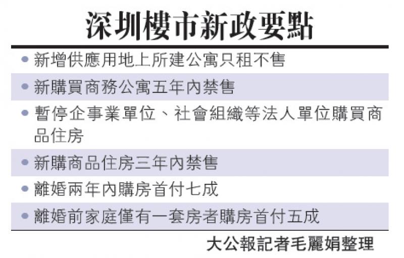 深圳市昨晚发布《市规划国土委关于进一步加强房地产调控促进房地产市场平稳健康发展的若干措施的请示》(下称“深四条”),堵住现有市场漏洞,调控升级。同日,国家住房和城乡建设部(下称“住建部”)公布了共20家违法违规房地产开发企业和中介机构。分析指,新政出台有助于房地产市场的健康稳定发展,住建部公布的名单有助于规范市场秩序。