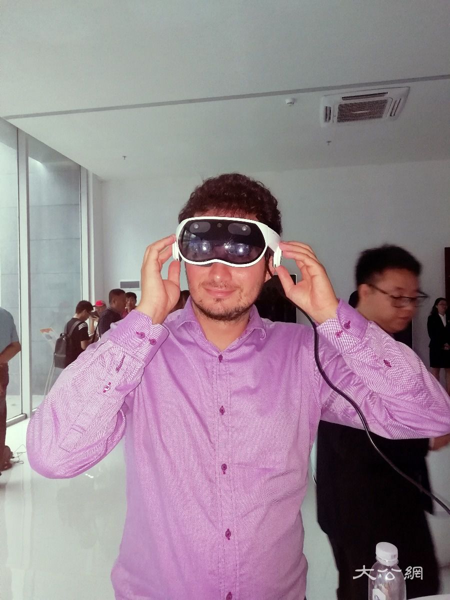马其顿代表试戴VR眼镜 大公报 记者 李昌鸿 摄