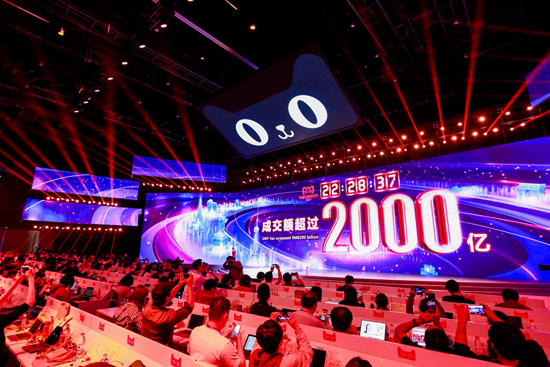 大公网11月11日上海电(记者 李晓蓉)2018年天猫双11即将落幕,据天猫刚刚公布的数据显示,在今晚22点28分37秒,2018年天猫双11成交额突破2000亿元,创造新历史。